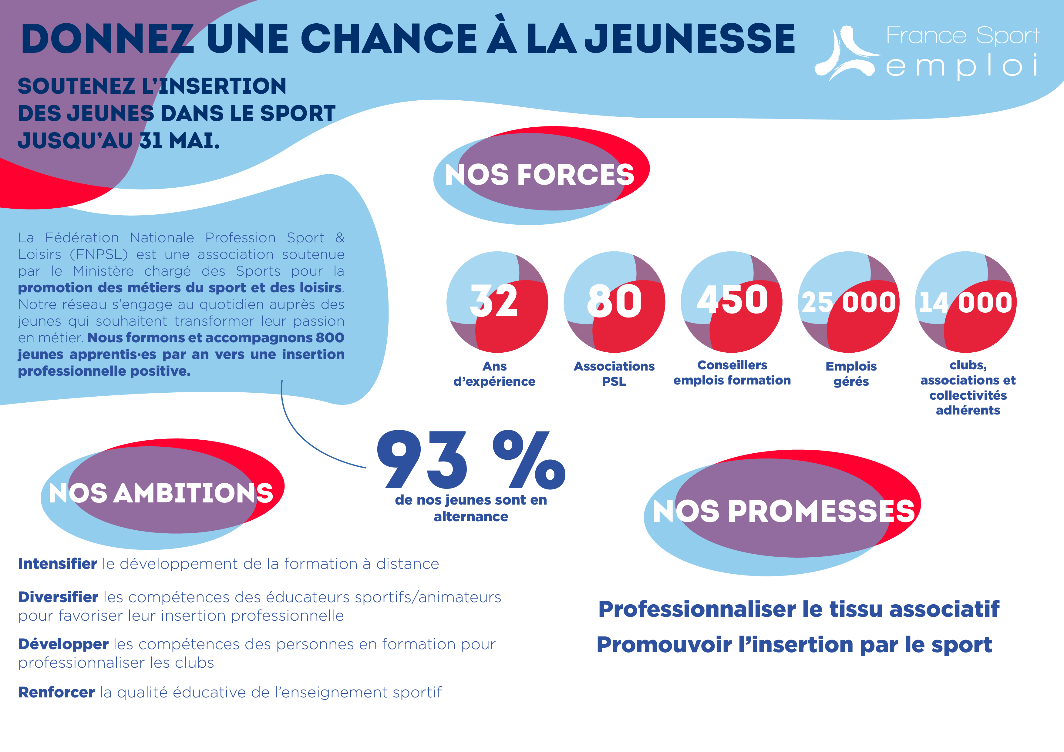 ?? France Sport Emploi, membre du réseau FNPSL – Fédération Nationale Profession Sport et Loisirs souhaite diversifier et développer les compétences des éducateurs sportifs/animateurs pour favoriser leur insertion professionnelle. ??